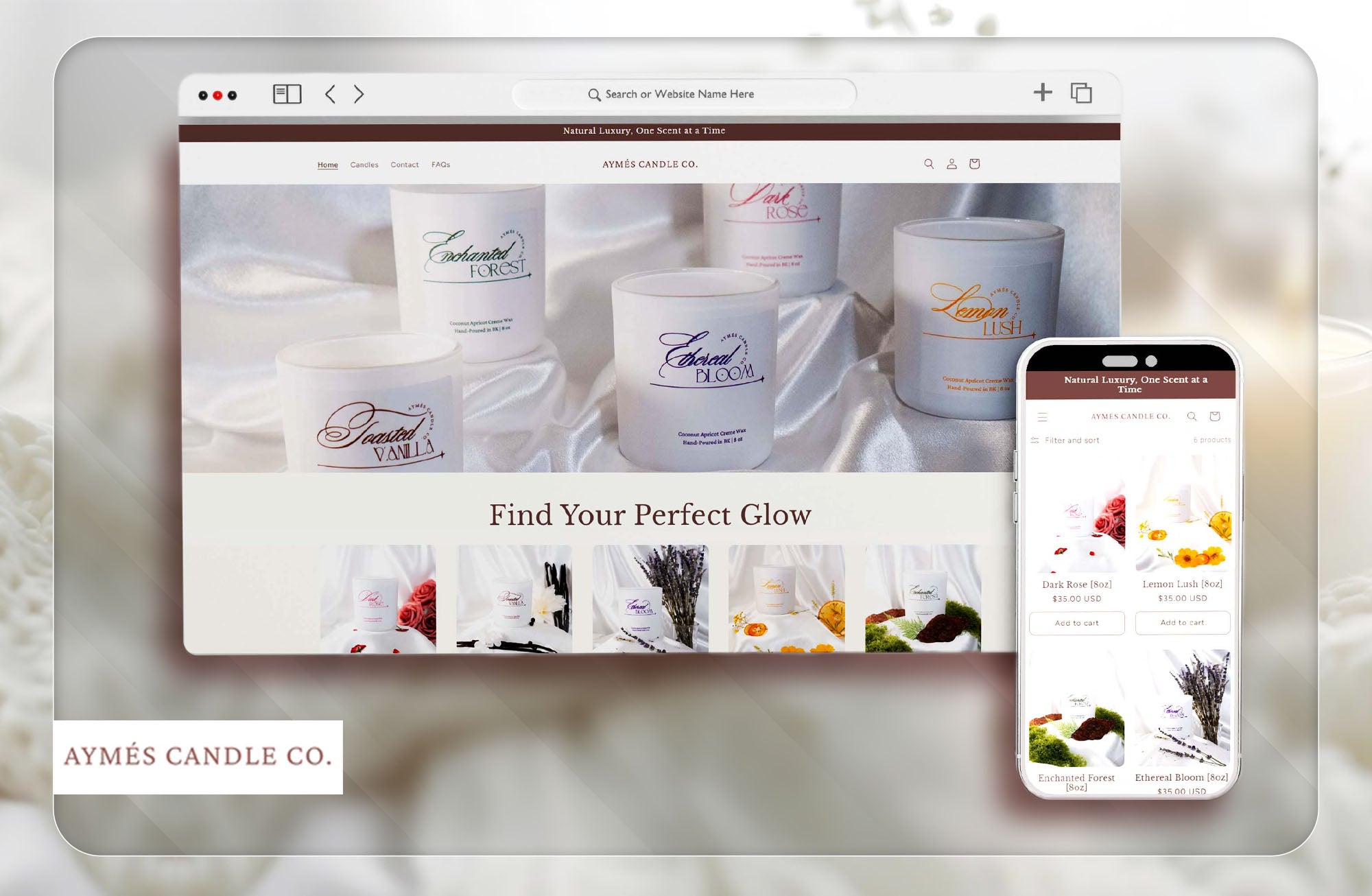 The new Aymés Candle Co. website beautifully captures the brand’s artisanal essence—luxurious yet grounded, clean yet inviting. With its elegant design, engaging storytelling, and functional bundle feature, the site provides an elevated shopping experience that connects customers to the craft behind every candle. The result is a cohesive digital presence that supports the brand’s growth and showcases their handmade products with warmth and sophistication.