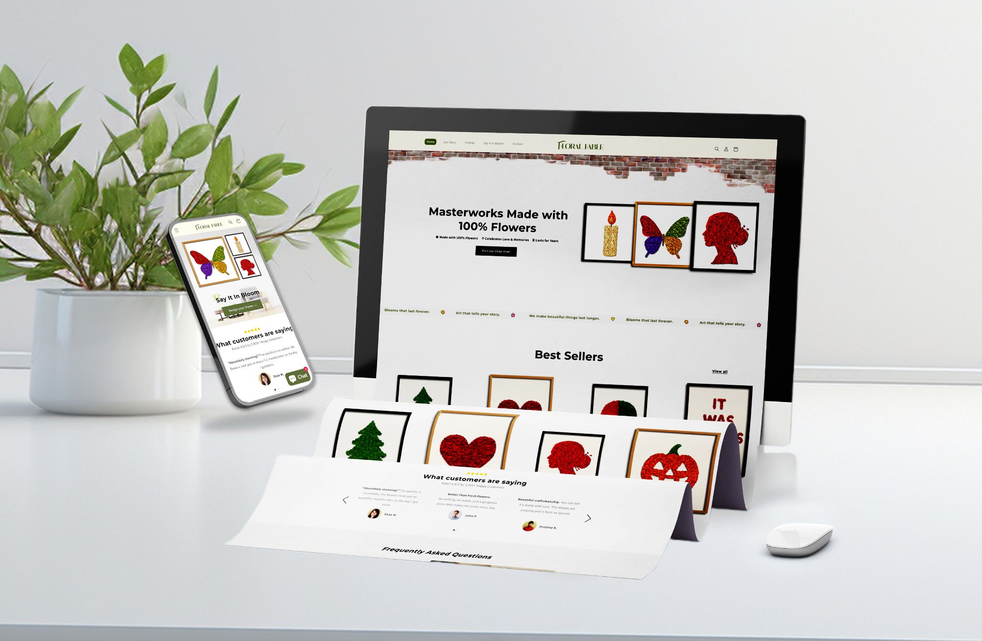 Floral Fable creates beautiful framed flower art made from real dried petals, designed to capture moments, memories, and meaningful messages that last. They reached out to us for a complete Shopify store development to bring their artistic vision online and make their handcrafted creations accessible to a wider audience.