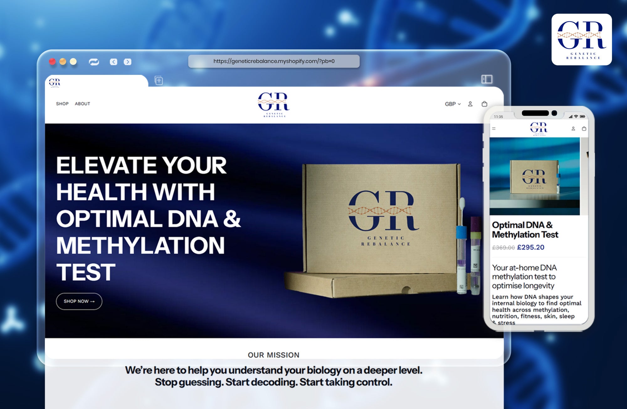 Genetic Rebalance is a one-product eCommerce brand offering an at-home DNA methylation test designed to help individuals optimise longevity and overall wellness. The brand focuses on clear, science-backed insights that help users understand how their DNA influences health across methylation, nutrition, fitness, sleep, skin, and stress.