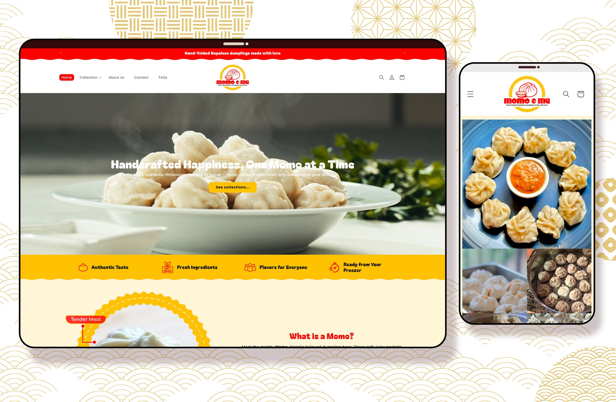 The finished Shopify store is a fully responsive, high-energy eCommerce experience that brings Momo & Me’s personality to life online. The website successfully highlights their unique flavors, supports effortless shopping, and positions the brand as a fun, modern frozen food option that stands out in a crowded market.